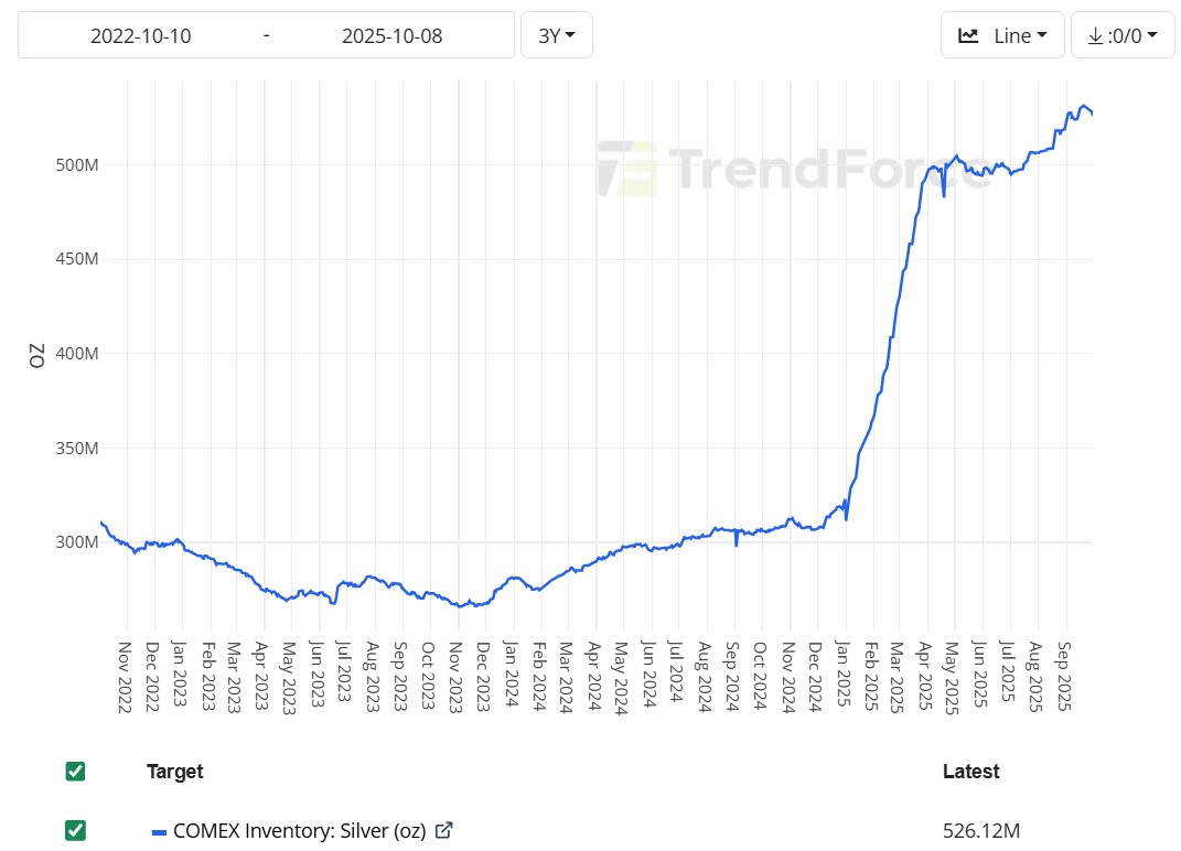 Silberbestand COMEX Warehouse aktuell | Chart Datatrack Trendforce