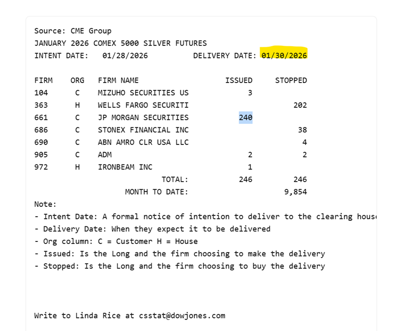 Auch JPM wusste, was die Zeichen der Zeit geschlagen haben und meldete den Verkauf von 1,5 Mio Unzen Silber (zumindest Client-Account). Bekommen hat den Großteil davon Wells Fargo. Was für Trottel, wahrscheinlich bei 120 Long gegangen....